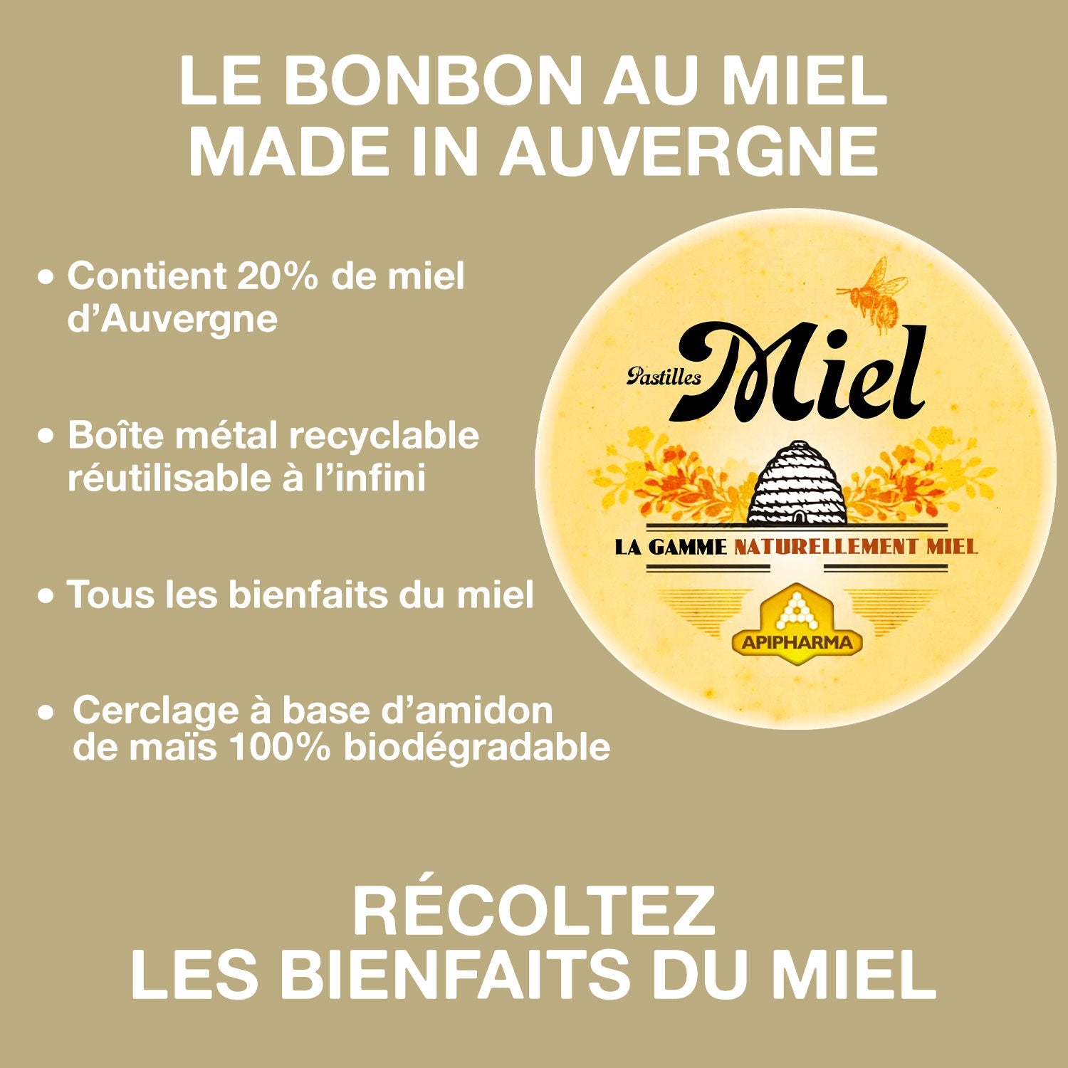 🍬 La douceur du miel et tous les bienfaits des ingrédients naturels que nous proposons en une pastille, voilà la définition d’Apipharma. Chaque bonbon est composé au minimum de 20% de miel d’Auvergne, car rien n’est plus important à nos yeux que de soutenir la production locale. Apipharma est la seule marque sur le marché national proposant des bonbons avec autant de miel !