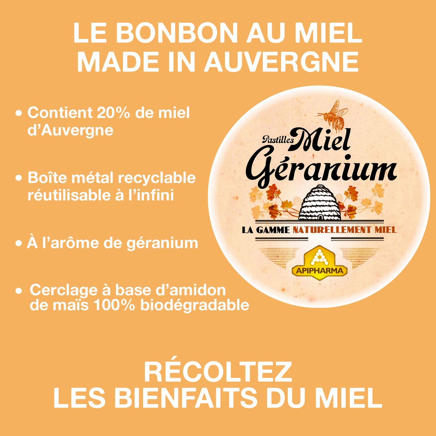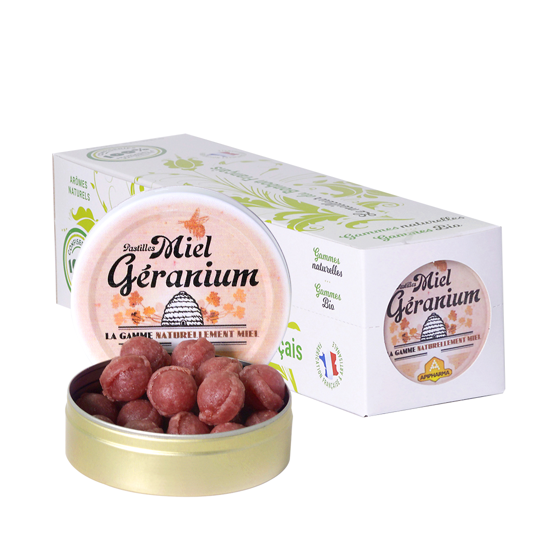 Pastilles Apipharma – Miel Géranium - Barquette de 10 boîtes