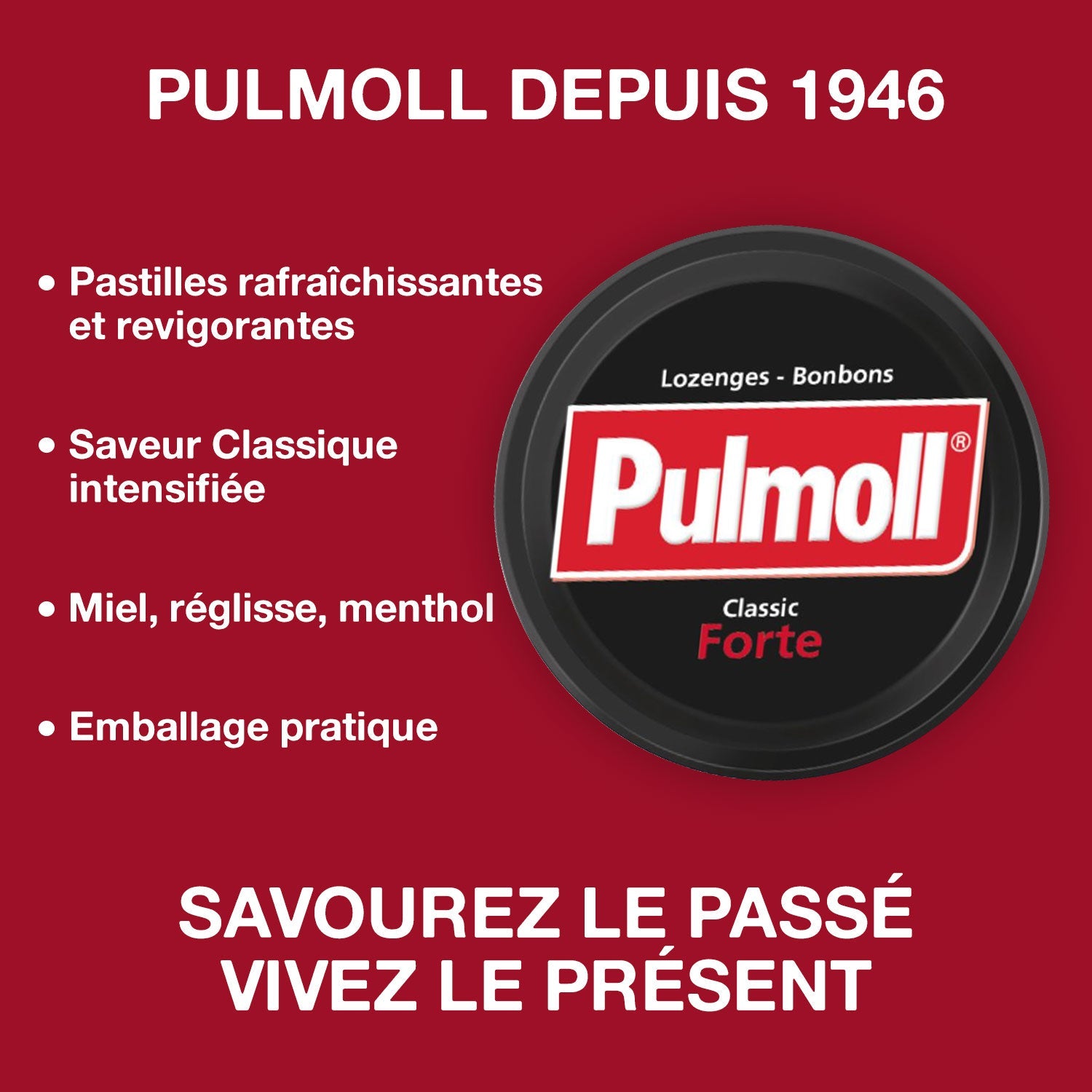 Découvrez ou redécouvrez la pastille Pulmoll présente en France depuis 1946. Offrez-vous une sensation de fraîcheur intense avec les pastilles Pulmoll Forte, une explosion de saveurs revigorantes à chaque instant de votre journée ! Profitez du lot de 10 boîtes en barquette pour faire des économies.