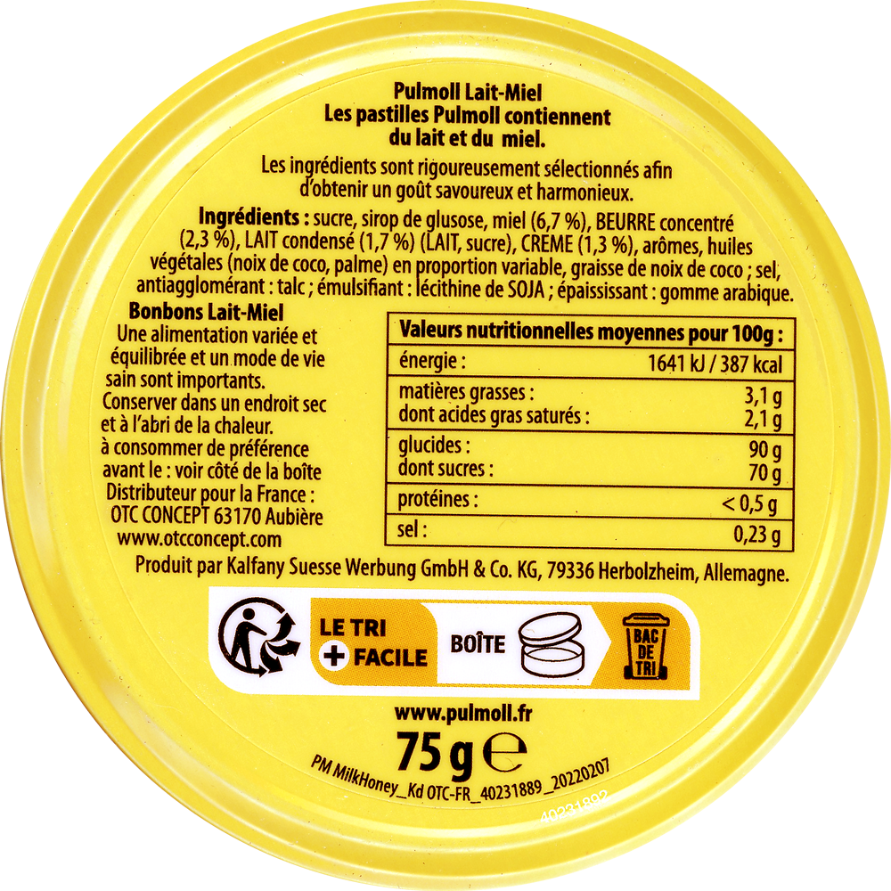 Pulmoll Lait/Miel | Pastilles Pulmoll Depuis 1946 - Barquette de 10 boîtes