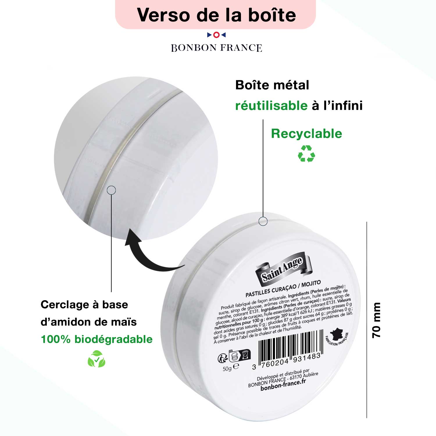 Un petit cocktail à transporter partout avec vous dans votre poche, cette idée vous tente ? Avec nos pastilles saveur curacao mojito, tout est possible ! Quoique de plus original que cette pastille au goût de votre boisson alcoolisée préférée ?