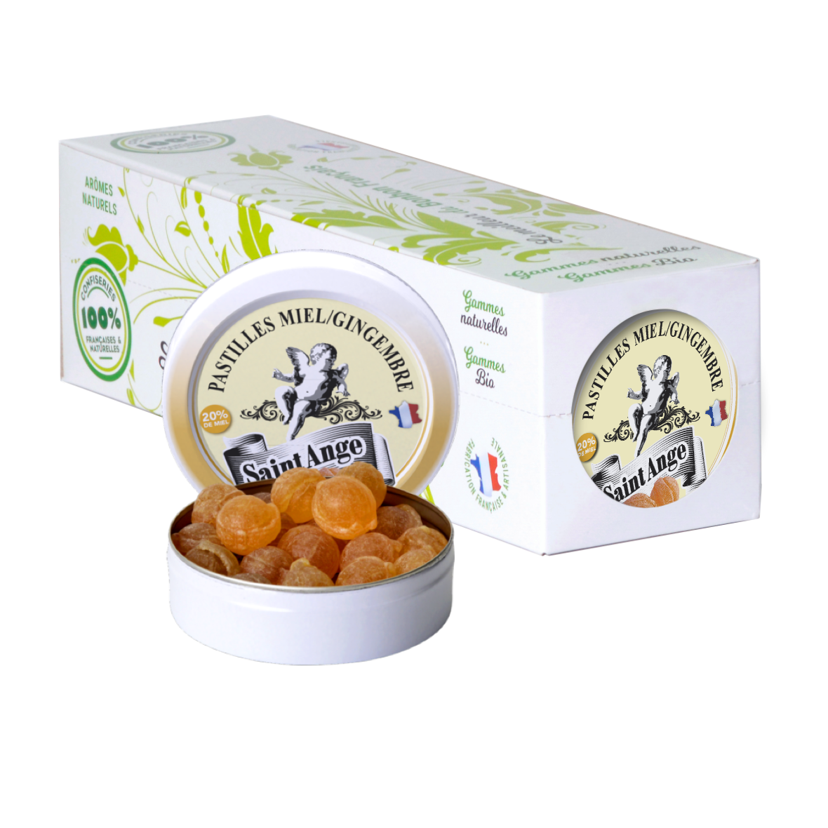 Pastilles Saint-Ange – Miel Gingembre - Barquette de 10 boîtes