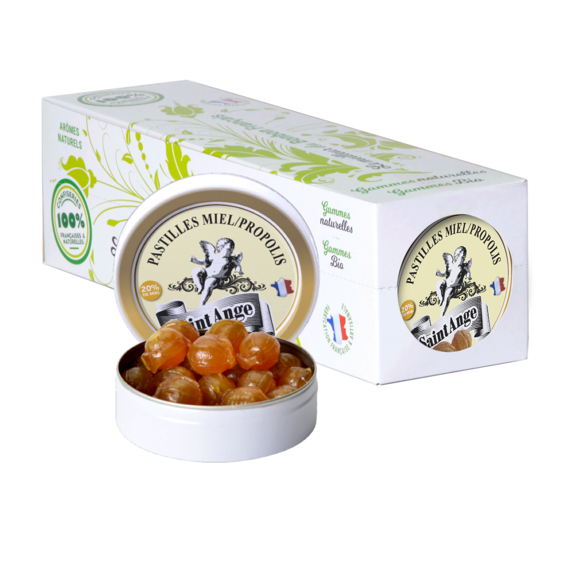 Pastilles Saint-Ange – Miel Propolis - Barquette de 10 boîtes