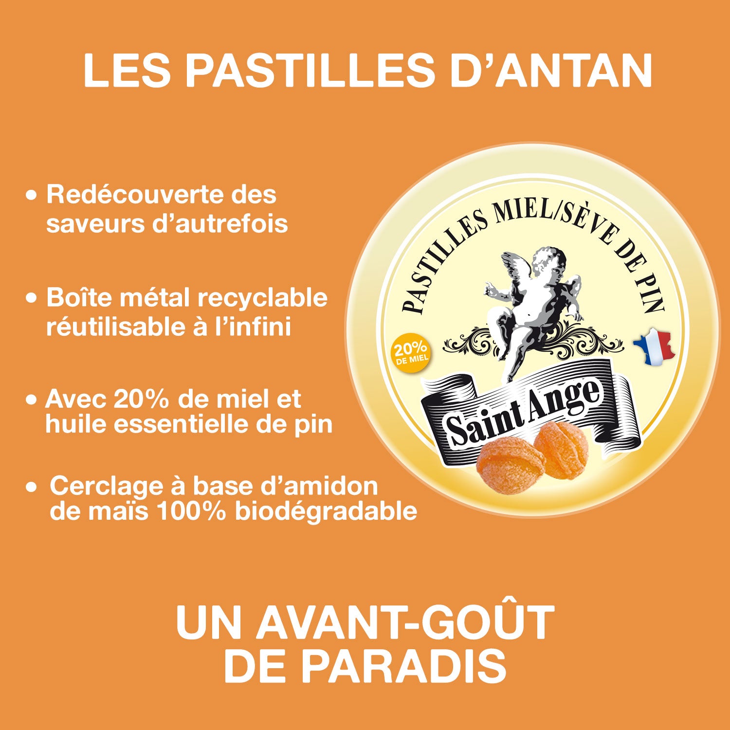 🍬 Opter pour Saint-Ange, c’est partir à la redécouverte des saveurs d’autrefois. En passant par une gamme florale, digestive, à base de miel, et enfin une gamme certifiée BIO, Saint-Ange vous ouvre les portes vers le paradis. Les pastilles aux saveurs naturelles, sont fabriquées en France afin de soutenir le savoir-faire français. Il doit également faire paire avec une exigence dans le choix des matières premières.