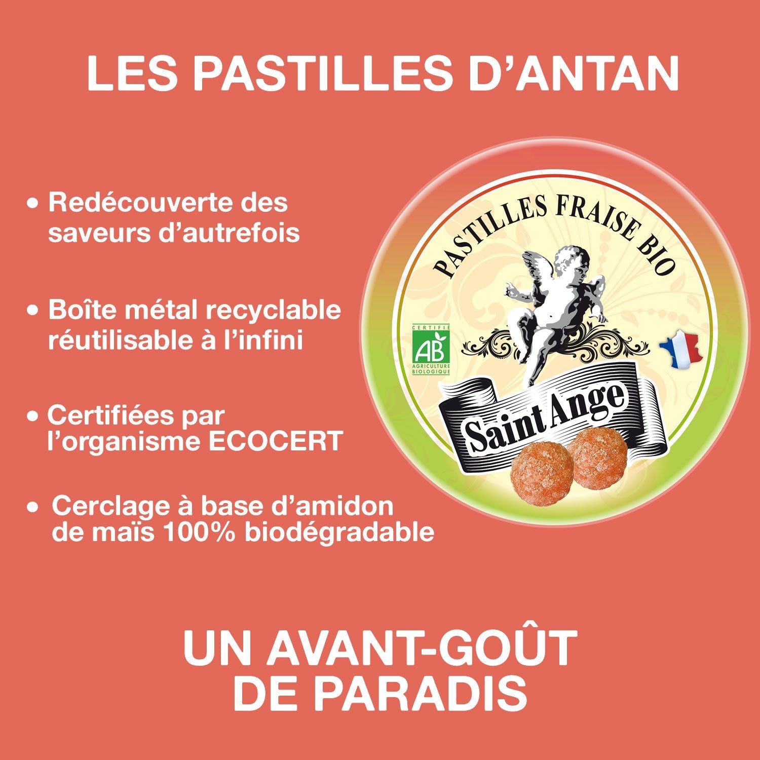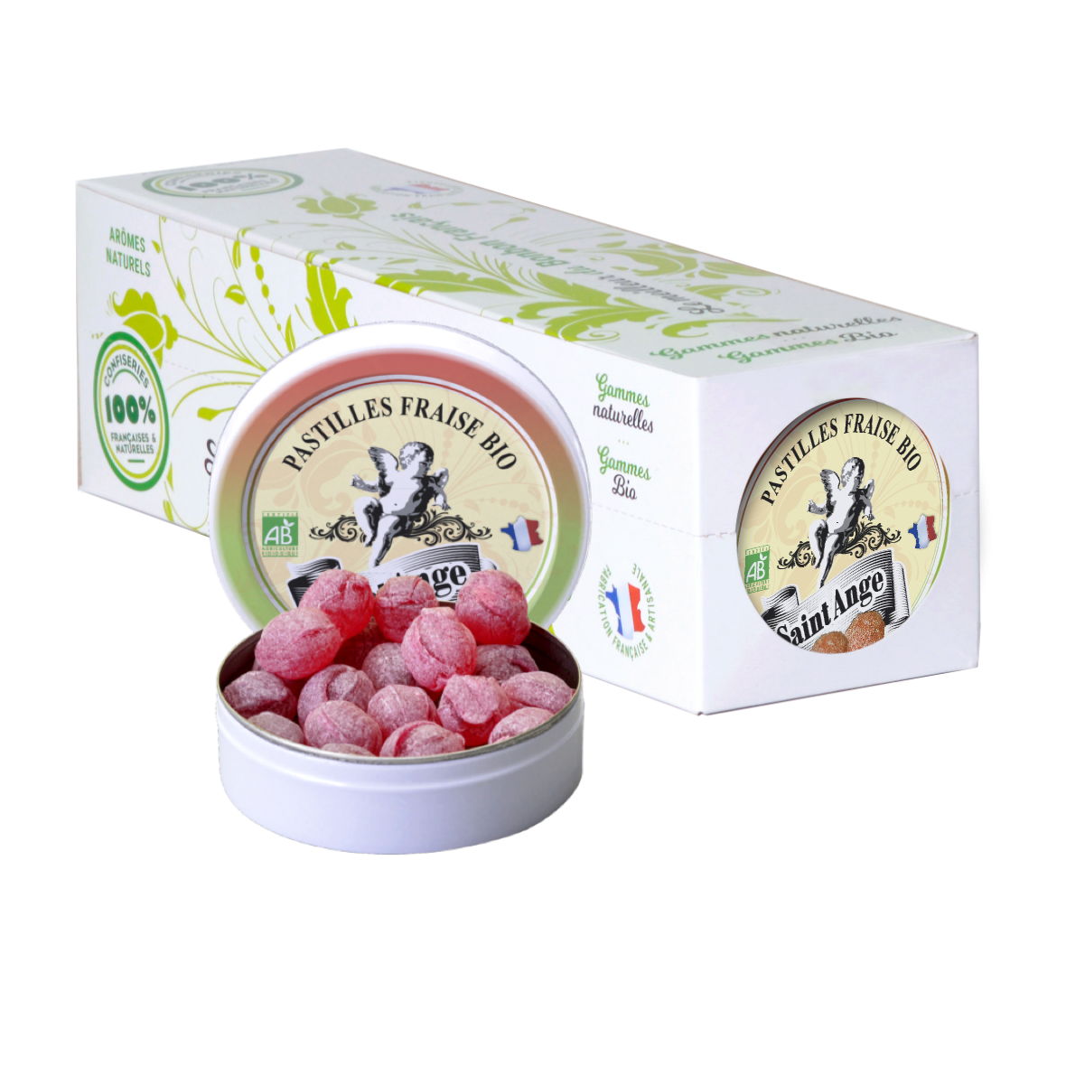Pastilles Saint-Ange – Fraise certifiée BIO - Barquette de 10 boîtes